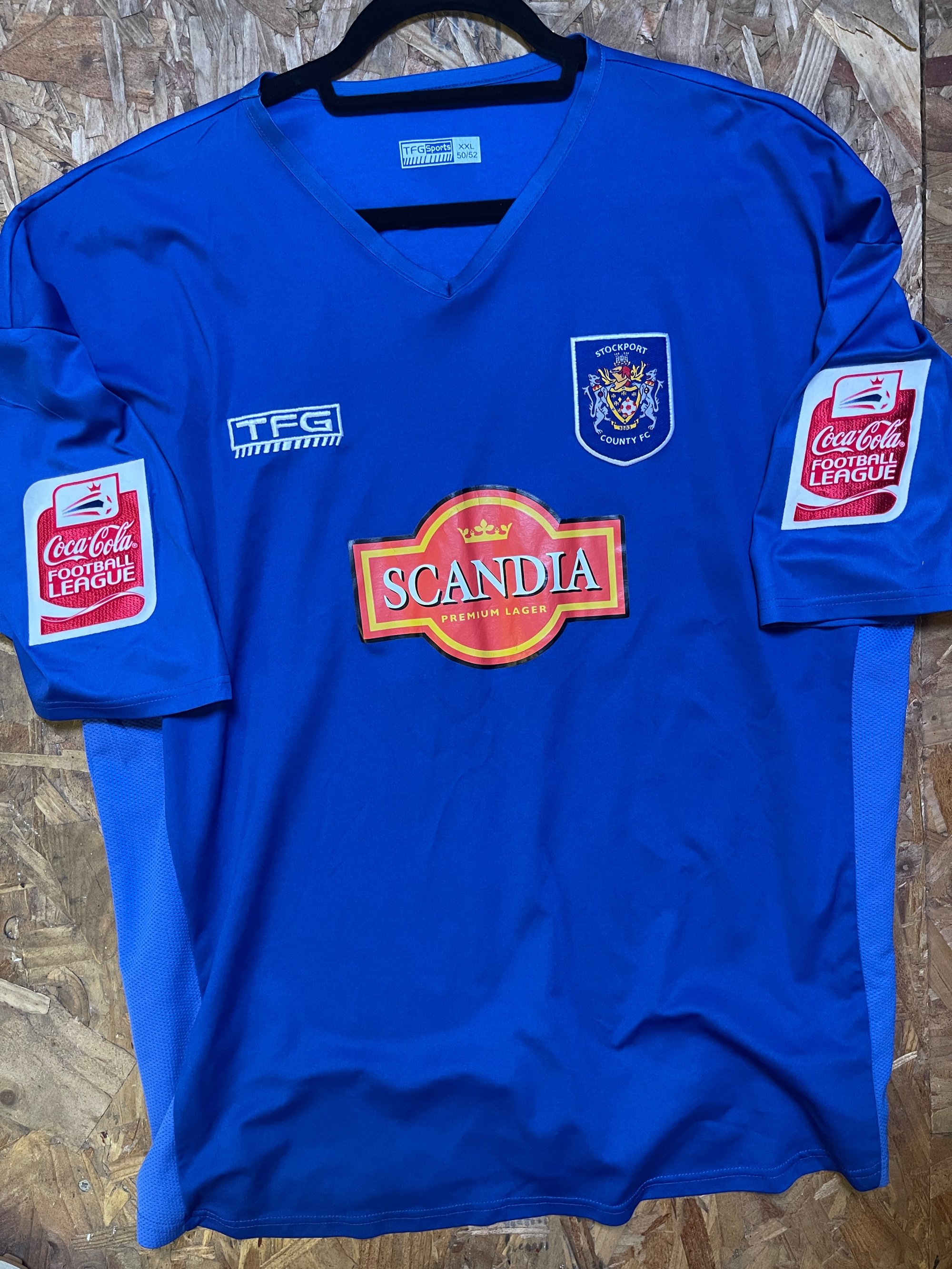 Size XXL, great condition throughout. All the good stuff including the correct name set, Coca Cola Football League patches and back of shirt sponsor, none of which were available commercially.