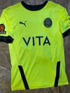 Anyway, worn by Tom Walker in one of his 300 spells with the club. Size M. Generally good condition, usual nicks and loose threads you'd expect from being worn. Used in a number of games in the run in, including Halifax and Boreham Wood away.